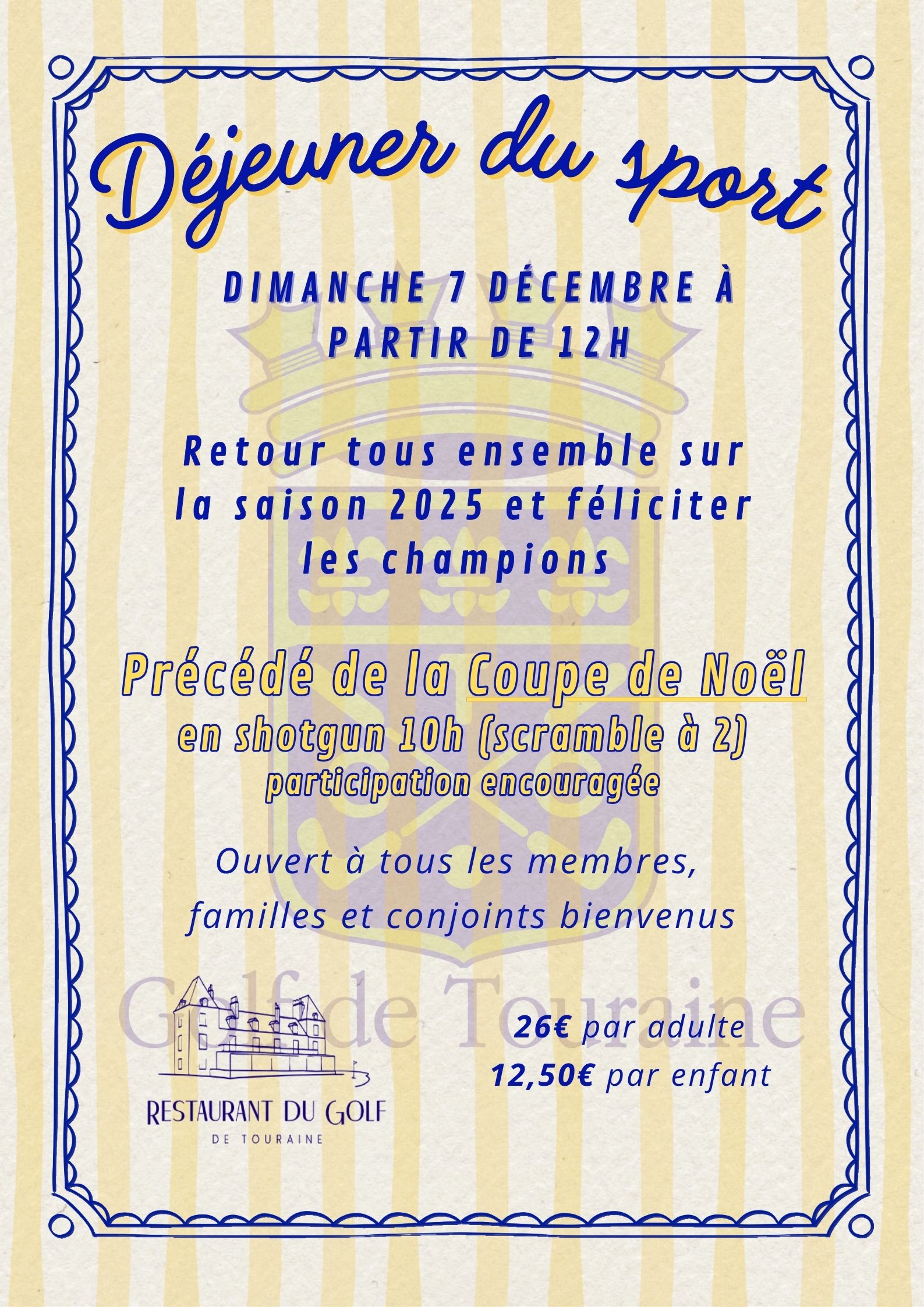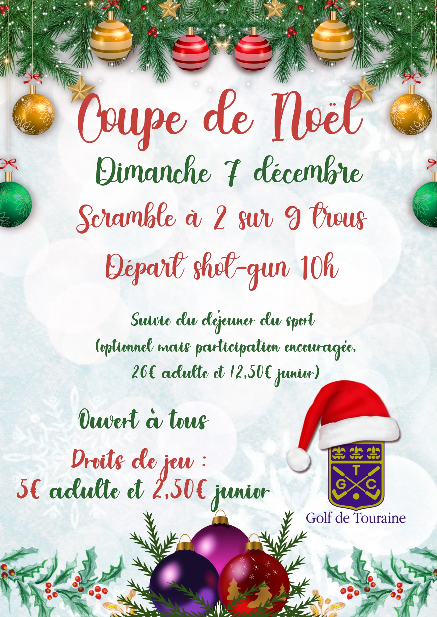 Dimanche 7 décembre : Coupe de Noël. En scramble à 2 sur 9 trous. Suivi du Déjeuner du Sport