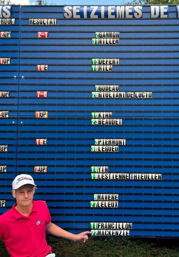 Il était donc temps pour Hugo de jouer son seizième de finale contre Thibaut Francillon du Golf de Valescure. Notre tourangeau remporta les 3 premiers trous puis a géré le reste de son parcours et remporte son match 2&1.