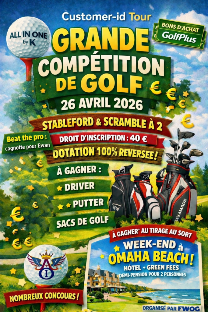 « Les amis, comme vous l’avez vu sur l’affiche au proshop, on vous prépare une grande compétition au Golf de Touraine le 26 avril. On jouera en Stableford & Scramble à 2, une formule idéale pour performer tout en partageant un bon moment. Nous sommes les sponsors de notre compétition